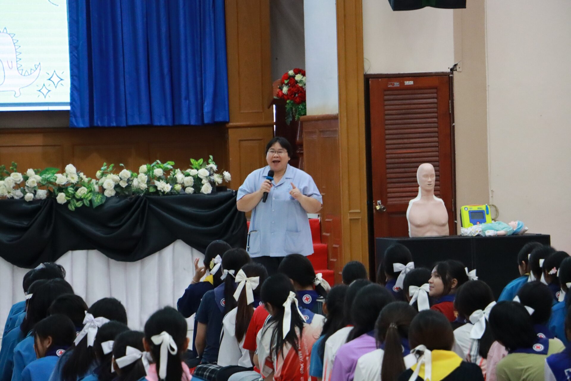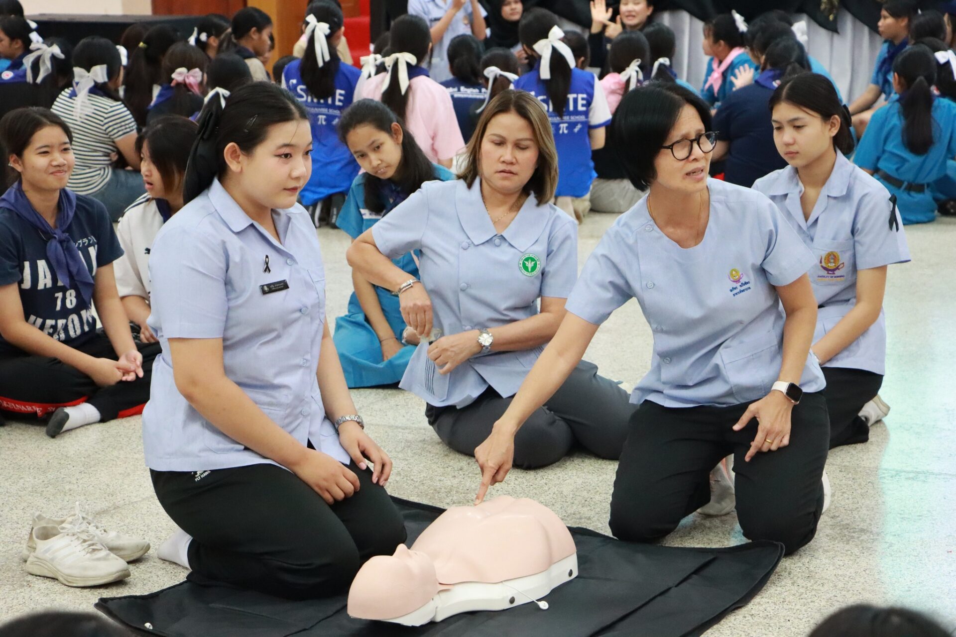 คณะพยาบาลศาสตร์ฯ ให้บริการวิชาการ เรื่อง การปฐมพยาบาลและการช่วยฟื้นคืนชีพขั้นพื้นฐาน(CPR) ในวันที่ 11 กุมภาพันธ์ 2569 เวลา 13.00 น. ณ โรงเรียนวิทยานุกูลนารี โดยมีเนตรนารีและยุวกาชาดจำนวน 384 คน เข้าร่วมกิจกรรม